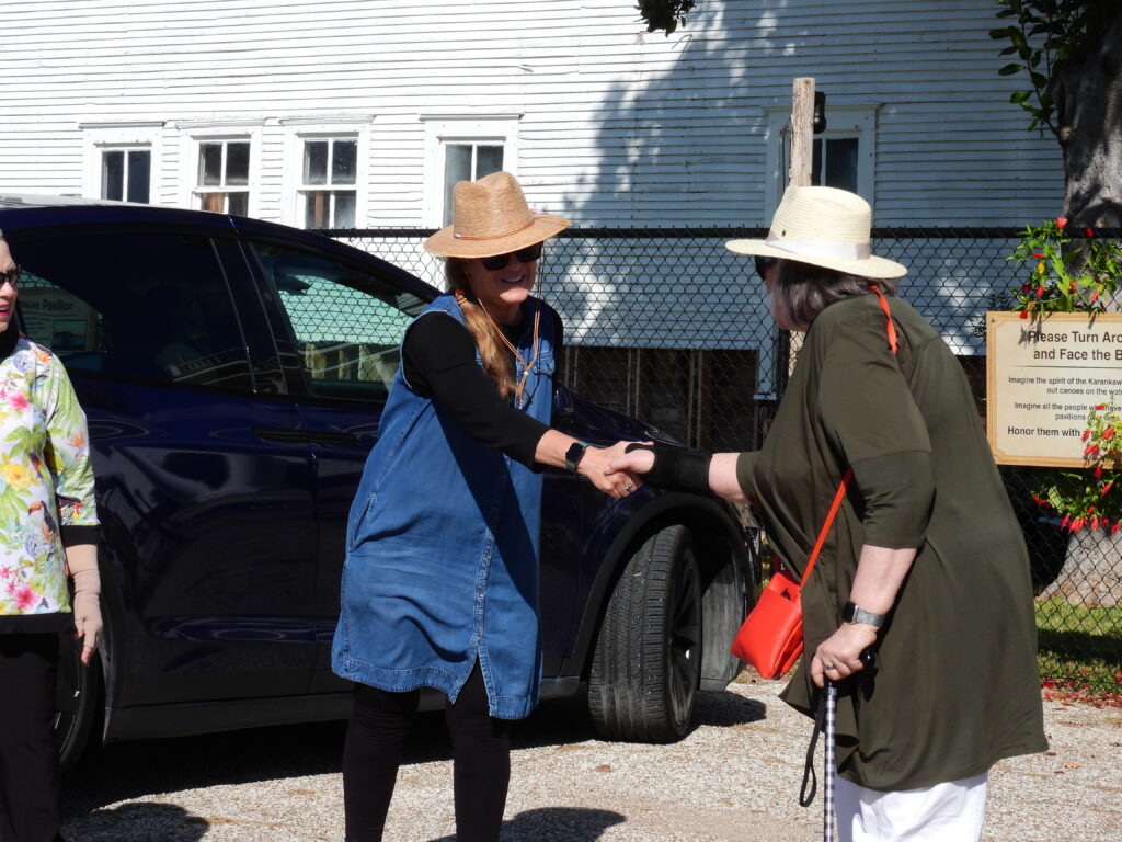 The visit began with a walk along the Luther Hotel fence wrap, where volunteers and guests viewed the timeline display tracing Palacios’s rich past and the hotel’s role as a coastal landmark.